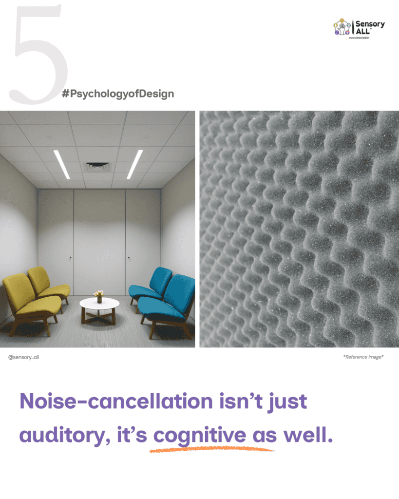 Neurodivergent brains often process sound differently due to atypical thalamic filtering, making them more sensitive to noise. Sudden sounds or background hums can trigger the amygdala, leading to fight-or-flight, sensory fatigue, and emotional dysregulation. Designing low-stimulation spaces (~under 50 dB) supports cognitive clarity and emotional well-being—for everyone.